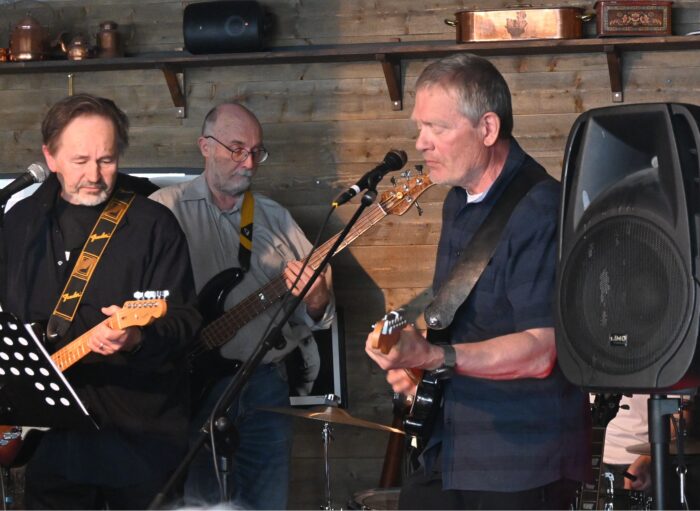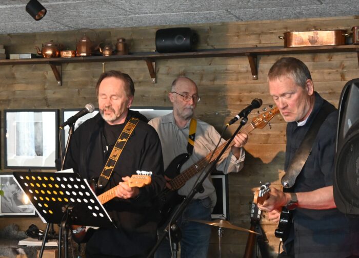 Därefter blev det elektriskt! Bengt Collberg gitarr, Börje Hansson bas och Niclas Rångefors trummor var bandet – själv fick jag också nöjet att rocka loss på elgitarr. 😉 Tack till alla som var med, både musiker och publik! Och tack till Norra station för lokalen!